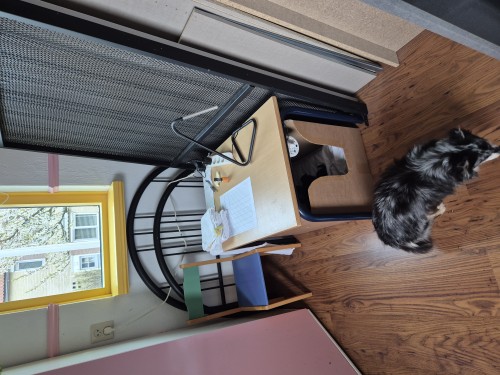 17-01-2026 de eerste dekking van A.J. Bubbles zit erbij en kijkt erna, wat zal ze daar denken, gisteren waren wij nog een setje en nu..... DIT Tja, voor katten gelden andere regels dan voor mensen 😜 Dekkingen met een eigen kater zijn zo veel meer ontspannen. Zo erg ontspannen dat je je nek er over breekt, of zoals hier je als hond maar net moet doen of je het niet ziet 🤭 ![]()