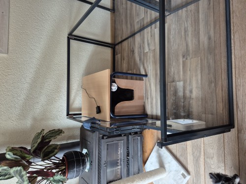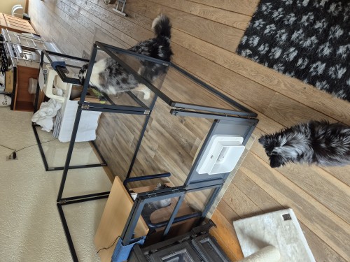 En we zijn weer Bob de Bouwer zeg ik dan altijd. Omdat A.J. nog wel af en toe moeilijk doet tegen Bubbles (en de andere keer weer niet) hebben we de ren gesplitst in 2 gelijke delen. Beide met een eigen deurtje. En de deuren niet naast elkaar.vLater zijn de water en voerbakjes er nog bij gezet, de elektra zo gelegd dat beide kraamdozen weer werkende camera's hebben. De bewaking is ook geregeld 🤣🤣🤣 Biscuit en Fleur staan er weer met hun neuzen bovenop. Waardoor het niet pervse sneller gaat.