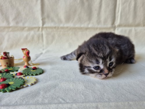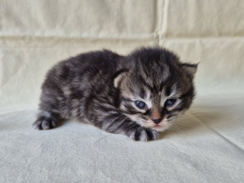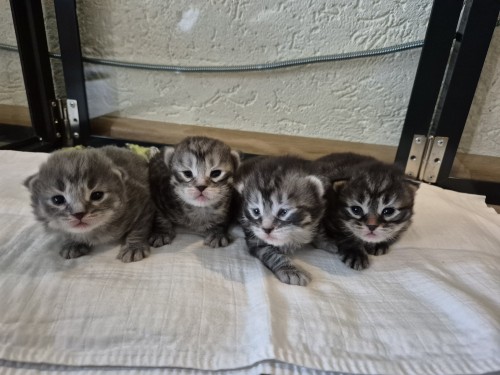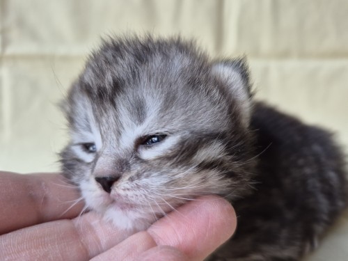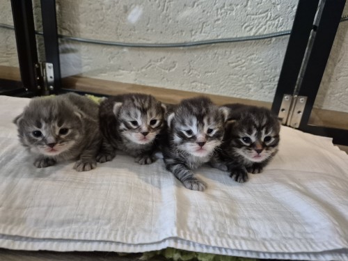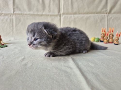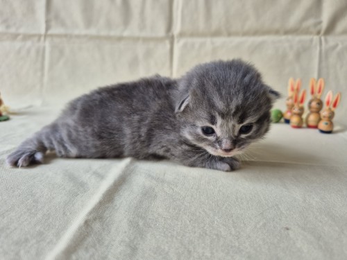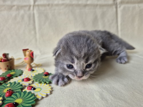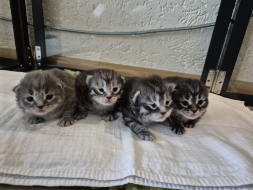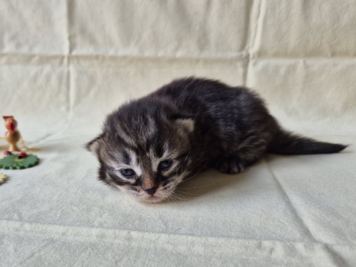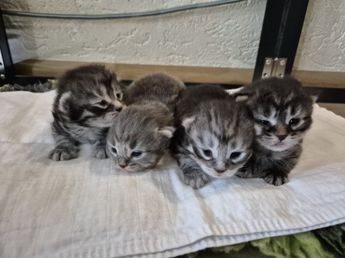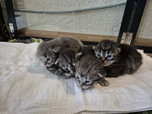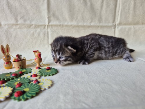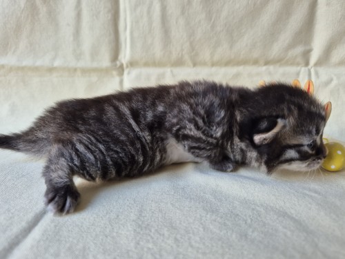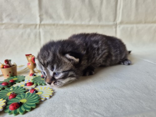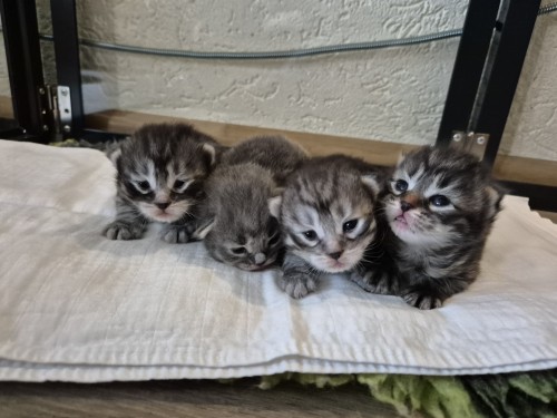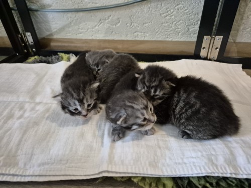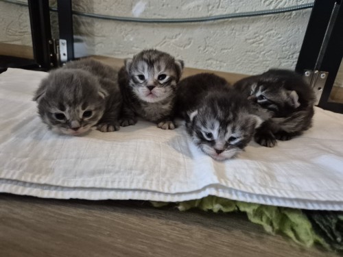 Hieronder ziet u de foto’s van de ontwikkeling van de kittens van Bubbles en Juki geboren op 19 maart 2026 in hun derde levensweek (14 tot 21 dagen).