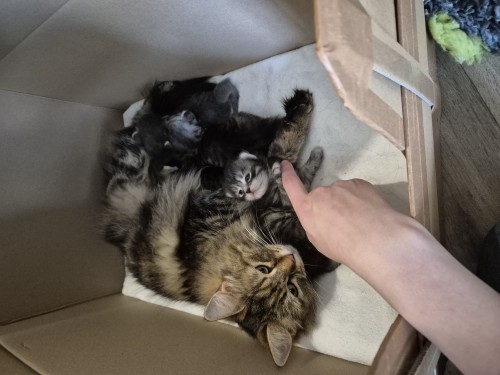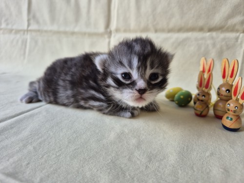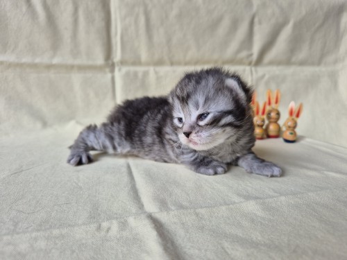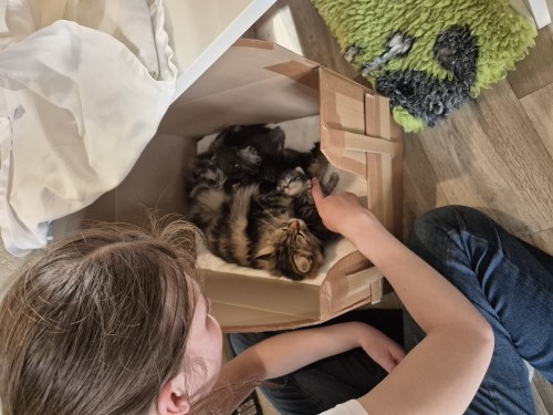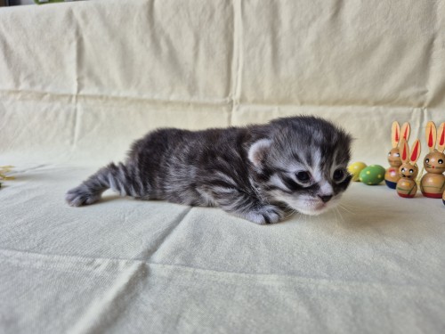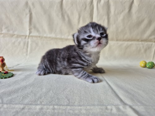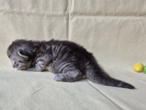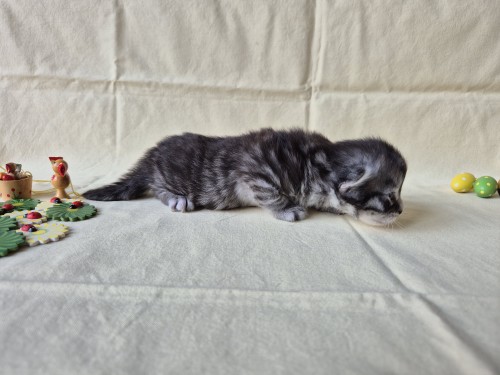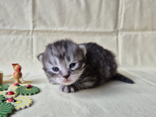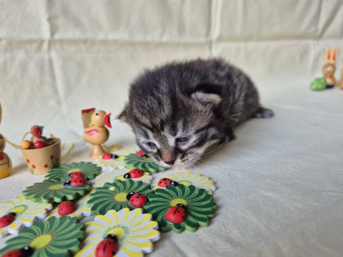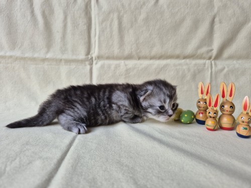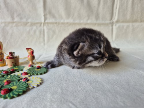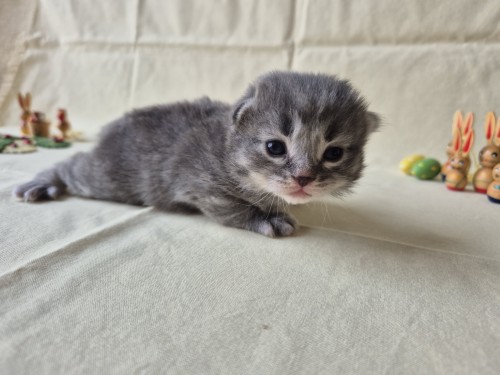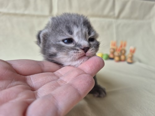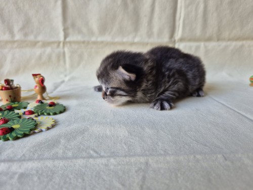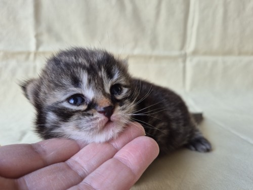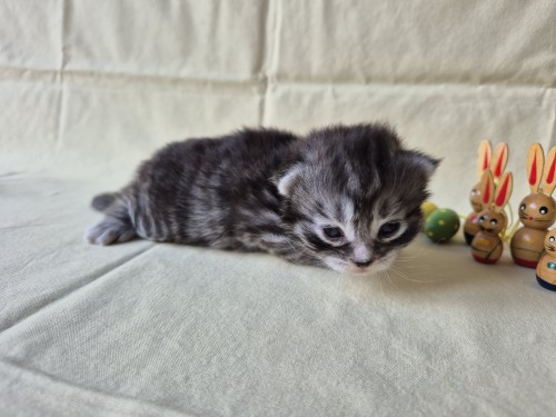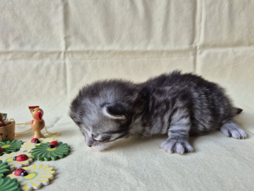 Hieronder ziet u de foto’s van de ontwikkeling van de kittens van Bubbles en Juki geboren op 19 maart 2026 in hun derde levensweek (14 tot 21 dagen).
