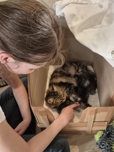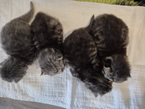 Kijk ze nou toch eens met zijn allen de goede kant op kijken. Je kan zo goed zien dat de oogjes nog verschillend open zijn bij de kittens