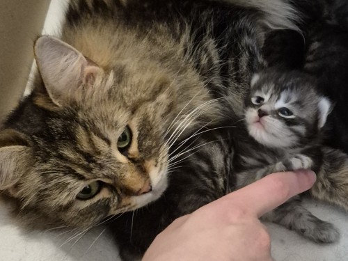 Even ingezoomd want hoe zoet is dat, het pootje op Ambers vinger en nog contact maken ook. En mamma Bubbles is lekker zen.