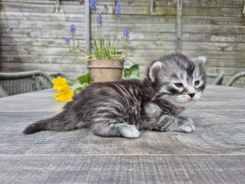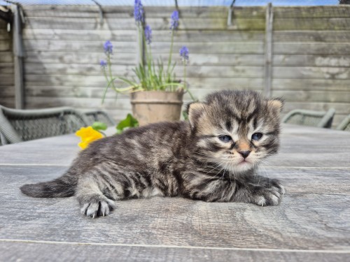 De nummers staan voor de volgorde van de geboorte van de kittens, ze worden hier absoluut niet als een nummer behandeld. Omdat de nieuwe eigenaren bij ons zelf de naam mogen kiezen, blijft dit staan tot ze besproken zijn en de naam gekozen is.