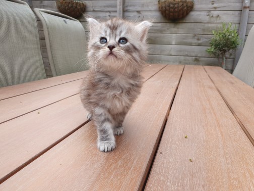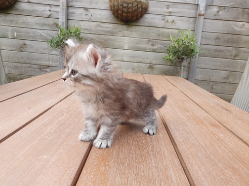 Het was lang twijfelen, was hij nu smoke of toch silver tabby, het was allemaal zo licht. Maar we zijn er uit, hij is een black smoke.