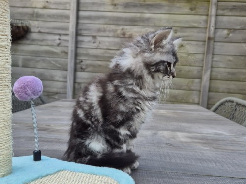 Hieronder ziet u de foto’s van de ontwikkeling van de kittens van Olivia en Ice geboren op 13 november 2024 in hun twaalfde levensweek (77 tot 84 dagen).