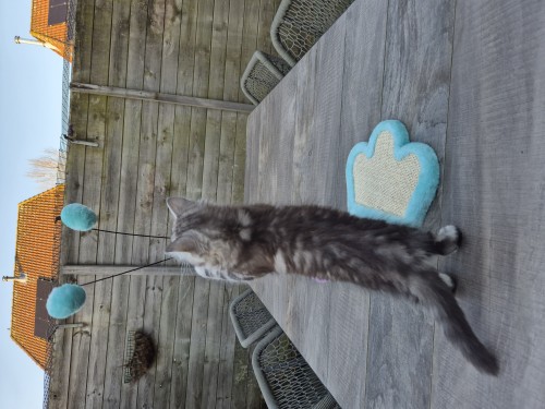 Nuvio hier, ik wil jullie wat vertellen. Vandaag had die mevrouw die hier altijd rondloopt weer wat bedacht hoor. En natuurlijk moest ik het weer als eerste ondervinden. Daar wil ik een klacht over indienen. De volgende keer moet ze maar 1 van die malle broers van me als eerste meenemen. Weten die ook eens hoe dat is. Overigens denkt ze ook nog dat ze grappig is, zegt ze met die camera in haar hand "leuk hè, vogels", nou volgens mij ziet ze ze vliegen haha. Ik vond het eerst helemaal niets. Ik maakte me heel klein, maar durfde steeds mezelf groter te maken. Ik heb even goed gekeken waar ik naar beneden kon, maar ben toen toch met het speelding gaan spelen. Grappige belletjes zitten in die bolletjes 😺 Toen gingen we weer naar binnen, ik dacht yes, ik ben klaar. Nee hoor, gingen we weer naar buiten. Deze keer was er een verenstokje mee. Lachen joh, ik steeds als ze een foto wilde maken de andere kant op kijken, of naar haar toe lopen whahaha zag er niet uit. Bodemonderzoek doen was ook geestig. Die laat mij de volgende keer gewoon binnen! Zeker omdat ik daarna die broers van me wat tips heb gegeven 😹