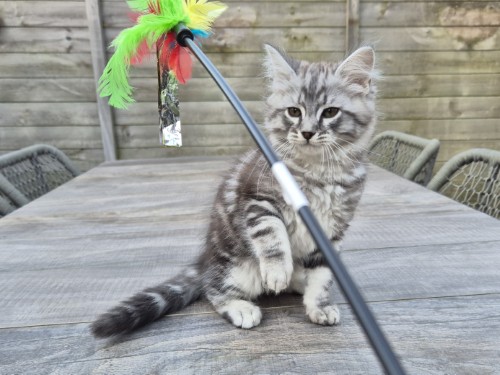 Teuntje hier, heb je net gelezen wat die opschepper hierboven allemaal zit te vertellen? Ik lag helemaal in een deuk. Kijk ik sta hier dan wel als laatste op de pagina, maaaaarrrrrr ik was gewoon als tweede aan de beurt. Dus omdat het na Dante op de site staat, betekend niet dat hij de eerste was haha! Ik kon ook bij de bovenste ballen komen, en poseren, pffff daar draai ik mijn poot niet voor om. Ik had wat energie over, dus heb al die ballen alle hoeken van de tafel laten zien, nou ja, tot het eind van het veertje dan. Tussendoor heb ik nog wat rek en strek oefeningen gedaan, hoorde laatst dat dat goed is tussen de trainingen door 😺 Op een gegeven moment begint het vrouwtje met een verenstok te zwaaien. Telkens als ik hem goed in beeld had, ging ze hem verstoppen. Dus ik alle kanten op kijken. Blijkbaar was dat niet de bedoeling, weet ik veel dat ik naar die camera moet kijken. Ik zag steeds die veren die achter haar rug waren in de weerspiegeling van de deuren 😹😹😹 denk dat ze geen idee had hoor! LOL.