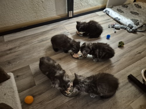 Hieronder ziet u de foto’s van de ontwikkeling van de kittens van Olivia en Ice geboren op 13 november 2024 in hun zesde levensweek (35 tot 42 dagen).