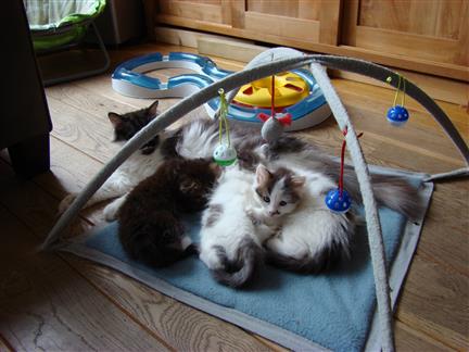 Hieronder ziet u de foto’s van de ontwikkeling van de kittens van Lemon en Stijn geboren op 26-02-2018 in hun zevende levensweek (42 tot 49 dagen).