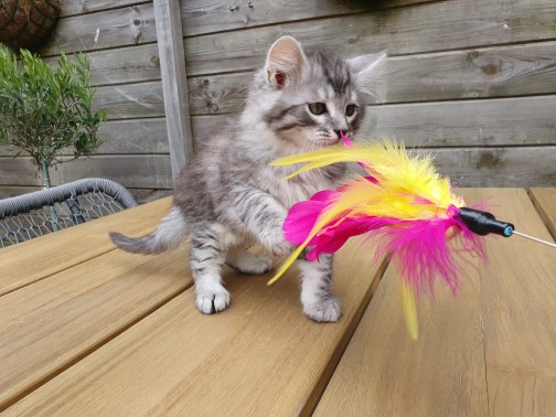 Ook hij gaat eens kijken waar al die grote katten steeds heen mogen en zij nog niet.
